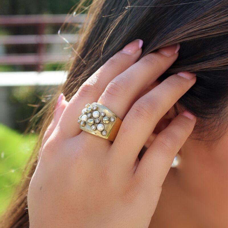 Anel em Aço Inoxidável e com madre pérola.