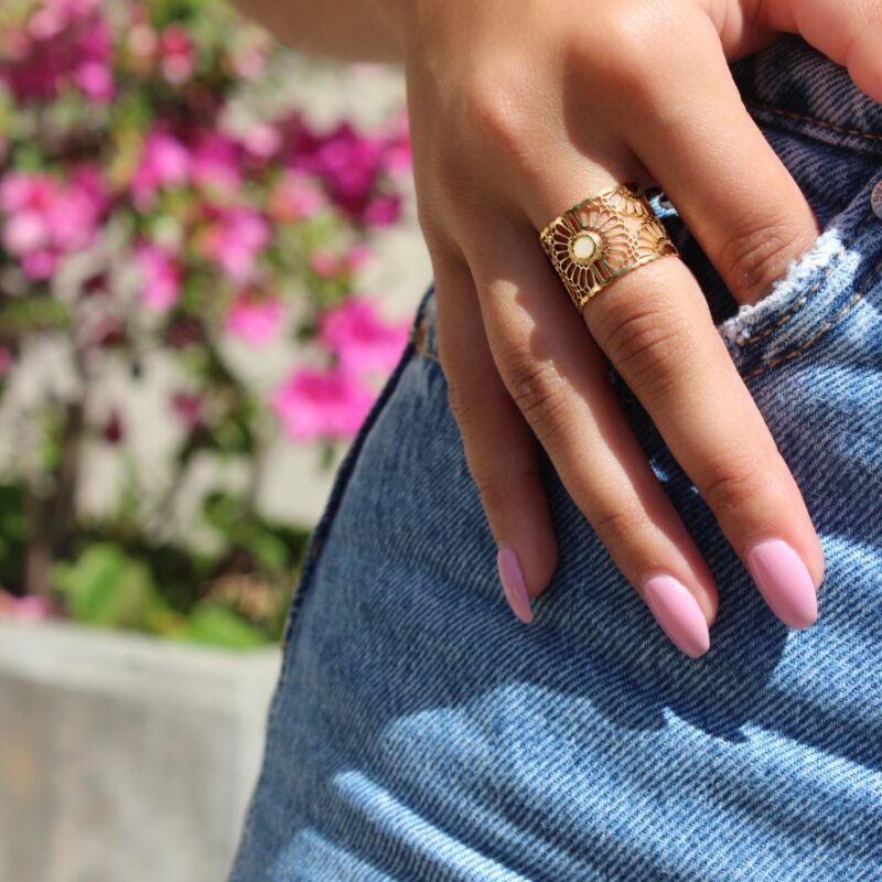 Anel em madre pérola ajustável e em Aço Inoxidável.
