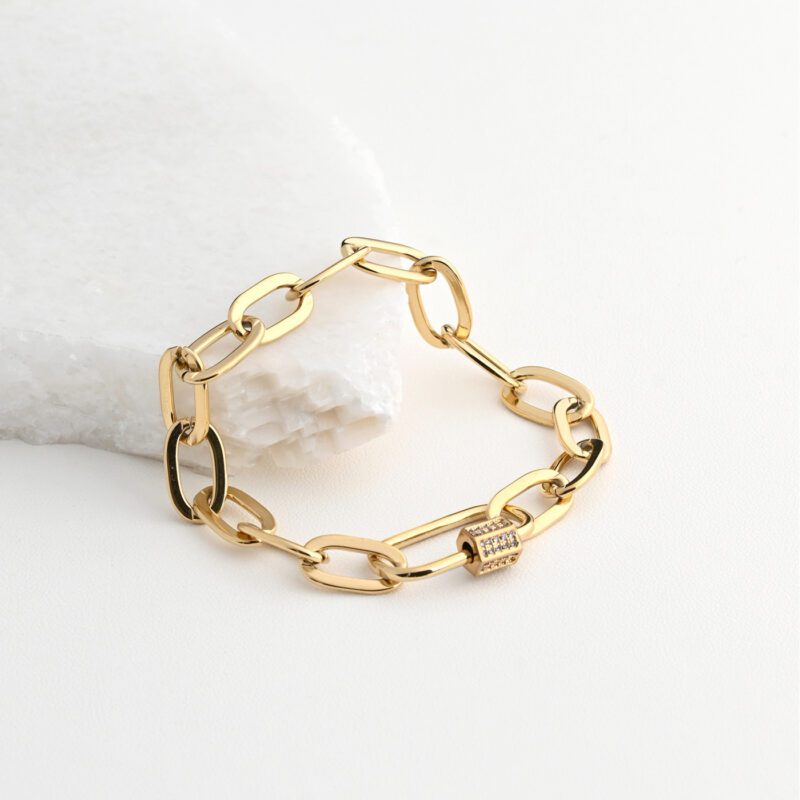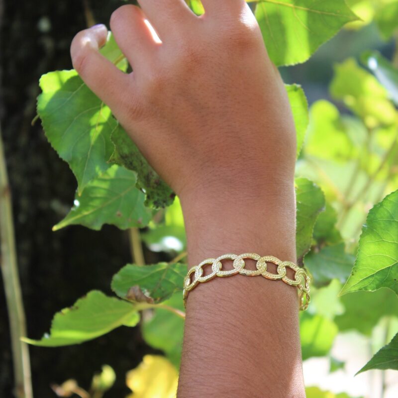 Pulseira em Aço Inoxidável. Medida: 16cm de comprimento e 3cm de extensor.