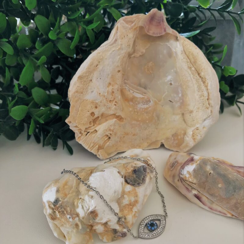 Pulseira madre pérola em aço Inoxidável ajustável.
