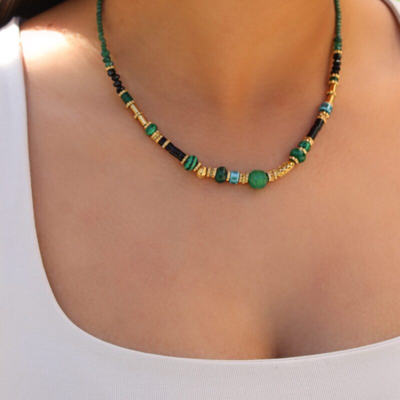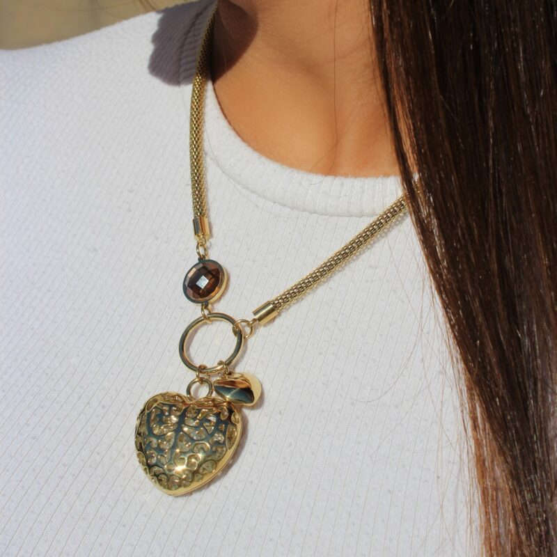 Conjunto Flambê ( brincos, anel e colar). Medida: 45cm de comprimento e 5cm de extensor. Pendente: 4cm Altura; 3cm Largura.