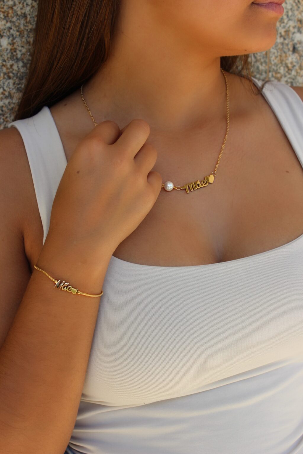 Pulseira Mãe em Aço Inoxidável, ajustável ao pulso.